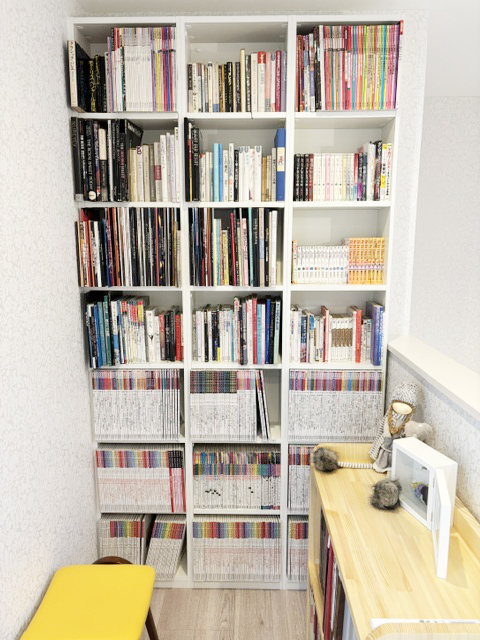 スタジオの発表会プログラムや写真、ダンスマガジンやバレエに関する本、絵本などが自由に閲覧できるスタジオアーカイブ(読書コーナー)